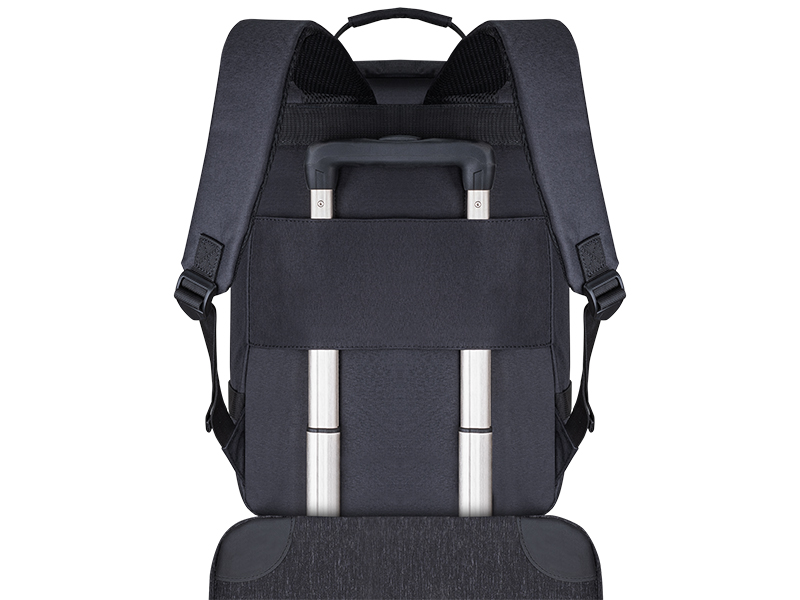 The side handle allows for quick carrying of the backpack like a handbag when you want to have it at hand without taking it off your back. Additionally, the luggage strap attachment makes it easier to move around the airport, allowing you to easily attach the backpack to the suitcase handle.